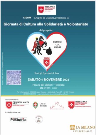 Vicenza, “Coprimi col cuore”: giornata di Solidarietà e Cultura in Piazza dei Signori. È previsto per sabato 9 novembre, in piazza dei Signori, dalle 9 alle 17, l’evento “Coprimi col cuore”: giornata di cultura alla solidarietà e al volontariato, organizzata dal gruppo di Vicenza del Cisom (Corpo italiano di soccorso dell’Ordine di Malta), con il […]